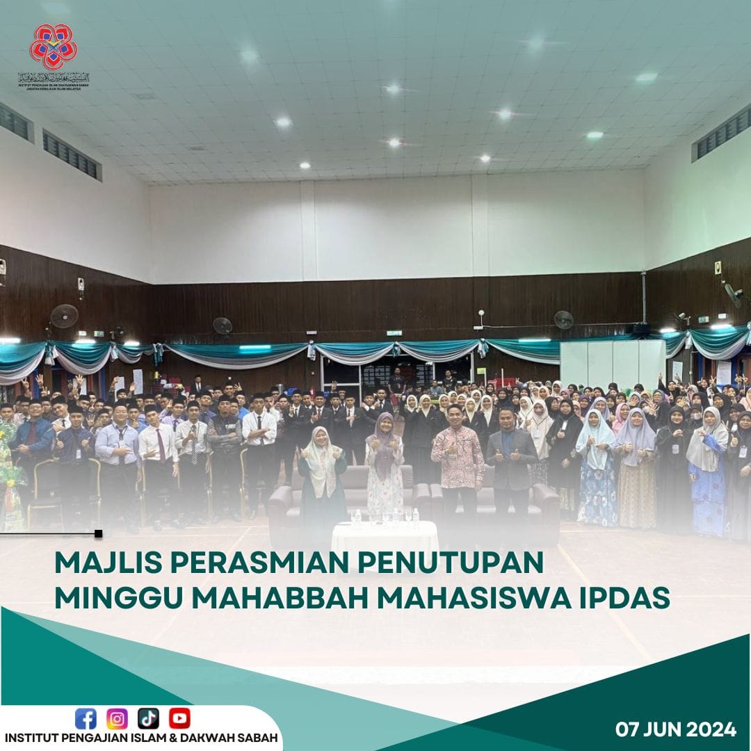 Keningau - Majlis Perasmian Penutupan Minggu Mahabbah Mahasiswa IPDAS (MIMI) telah dijalankan pada hari ini di Dewan Tun Sakaran, IPDAS. Majlis ini dijalankan bagi meraikan mahasiswa Program Diploma Dakwah Islamiah sesi 2024/2027 dan Diploma Dakwah Kontemporari sesi 2024/2026 yang bakal memulakan sesi pengajaran dan pembelajaran mereka pada minggu hadapan.
