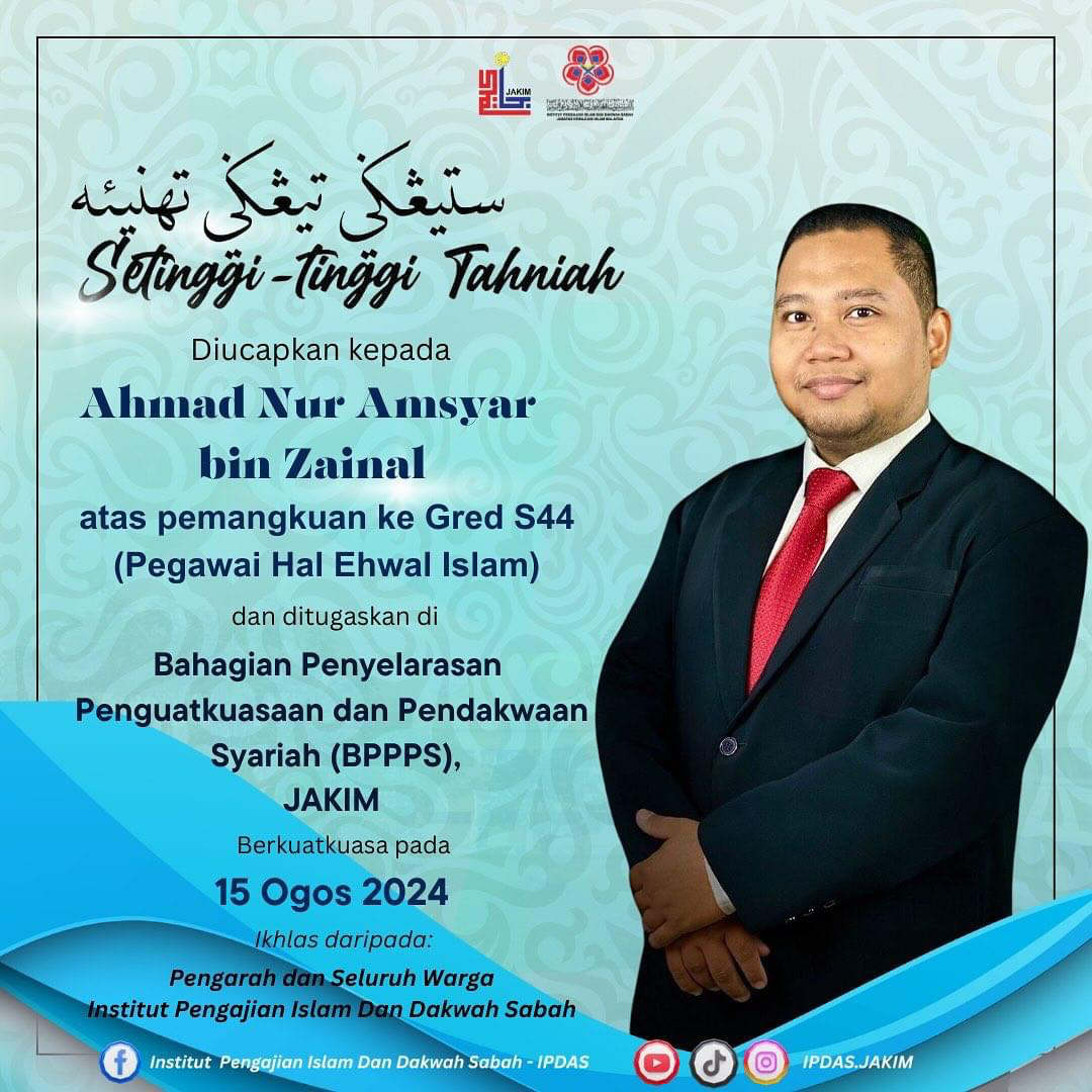 1. Ustaz Ahmad Nur Amsyar bin Zainal ditugaskan di Bahagian Penyelarasan Penguatkuasaan dan Pendakwaan Syariah (BPPPS) JAKIM ; dan