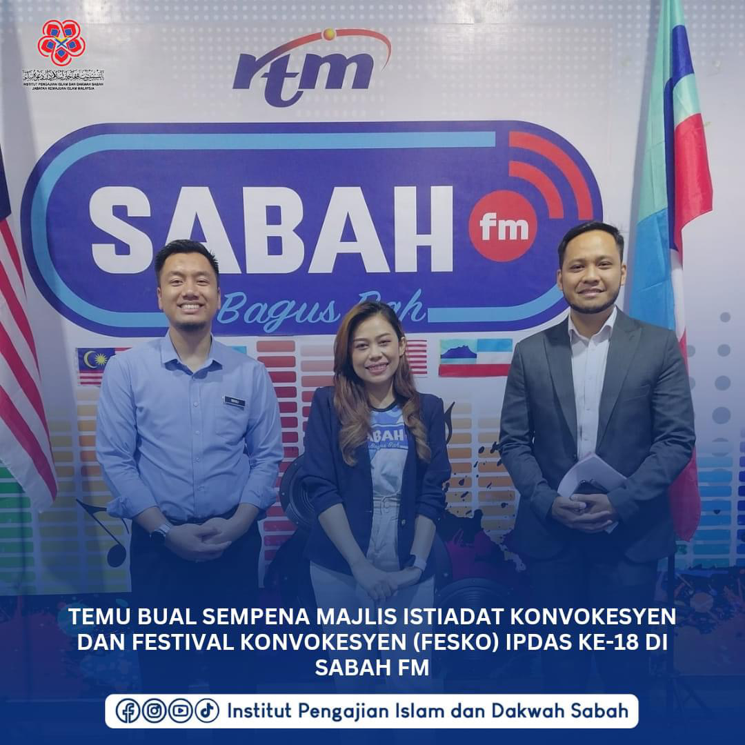 Kota Kinabalu - Penolong Pengarah Seksyen Khidmat Pengurusan, Ustaz Ahmad Azharuddin bin Abdul Sattar telah menghadiri temu bual melalui saluran Radio SABAH fm, hari ini bagi menyampaikan perkongsian mengenai konvokesyen IPDAS ke-18 yang akan dilaksanakan pada 18 hingga 20 Ogos 2024.