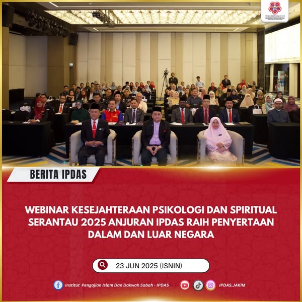 Kota Kinabalu - Membawa tema “Keseimbangan Psikologi, Kesejahteraan Sejagat”, IPDAS telah menjayakan satu Webinar Kesejahteraan Psikologi Dan Spiritual Serantau 2025 yang membawa khas penceramah hebat dari negara Malaysia, Brunei dan Indonesia untuk mengupas isu kesihatan mental dalam kalangan masyarakat pada masa kini.