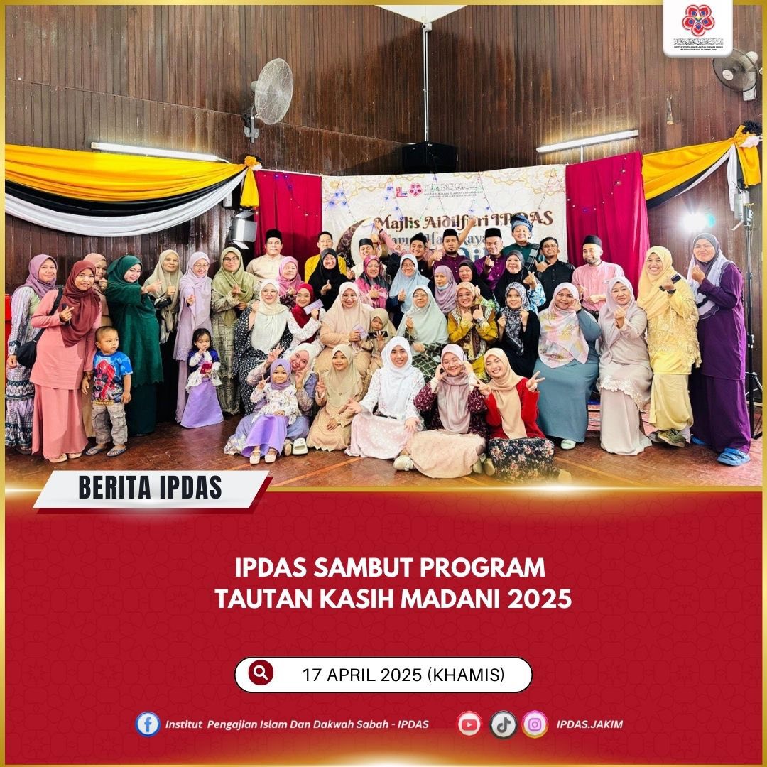 Keningau - Institut Pengajian Islam dan Dakwah Sabah (IPDAS) melalui Cawangan Pembangunan Kecemerlangan Mahasiswa telah menganjurkan sambutan Hari Raya Aidilfitri melalui Program Tautan Kasih Madani di Dewan Tun Sakaran, hari ini.