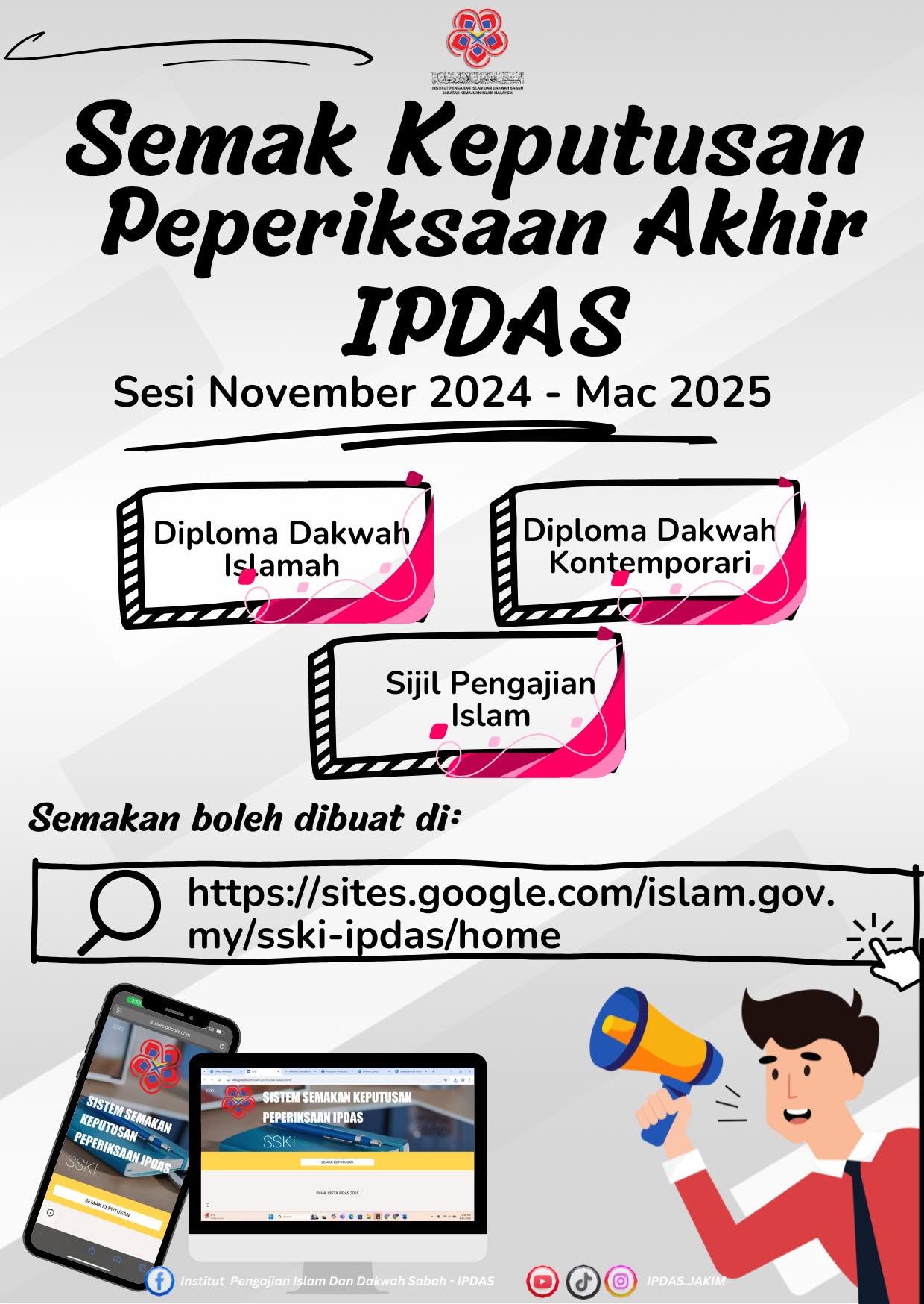 Keputusan boleh disemak di pautan https://sites.google.com/islam.gov.my/sski-ipdas/home