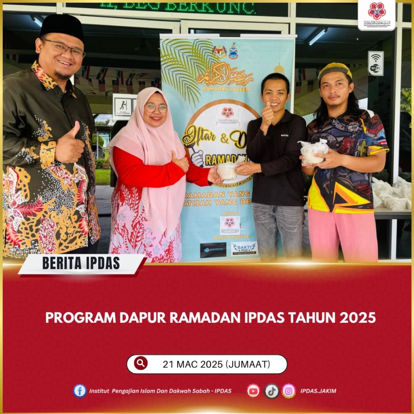 Keningau - Institut Pengajian Islam dan Dakwah Sabah (IPDAS) melalui Sekyen Pembangunan Sahsiah dan Pusat Islam dengan kerjasama BAKTI telah mengadakan Program Dapur Ramadan IPDAS pada 20 Mac 2025.