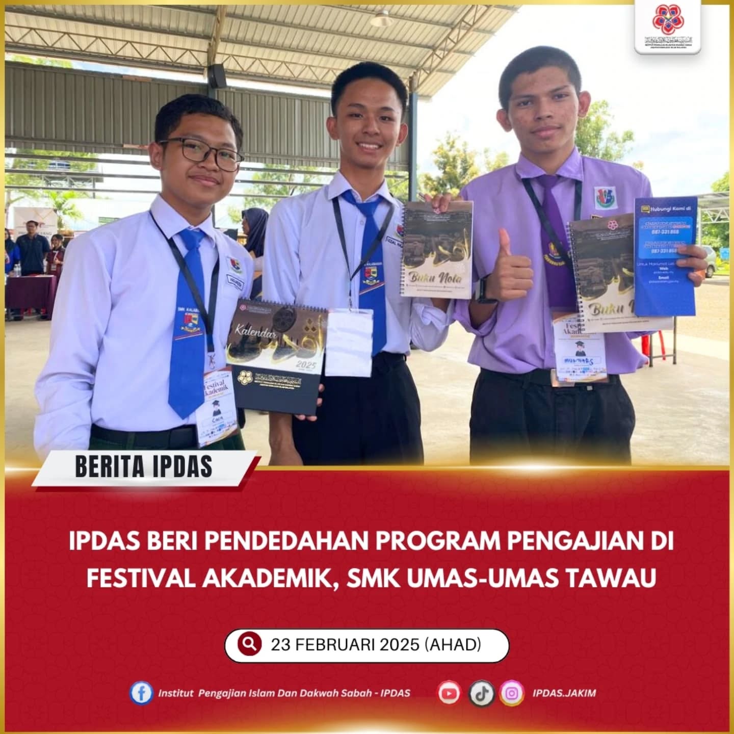 Keningau - Institut Pengajian Islam dan Dakwah (IPDAS) telah menyertai Festival Akademik anjuran Penggerak Pendaulat Borneo pada 23 Februari 2025 di Dewan Terbuka SMK Umas-Umas, Tawau.