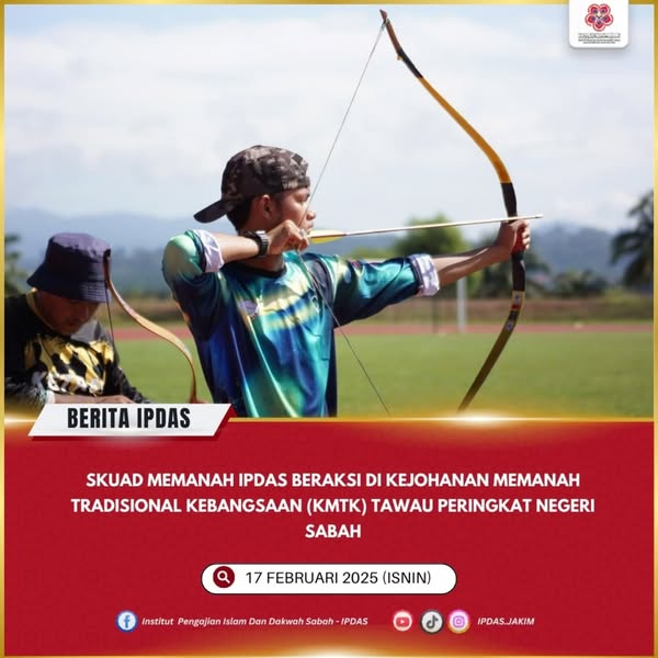 Tawau - Seramai 10 orang mahasiswa Institut Pengajian Islam dan Dakwah Sabah (IPDAS) telah menyertai Kejohanan Memanah Tradisional Kebangsaan (KMTK) Tawau Peringkat Negeri Sabah.