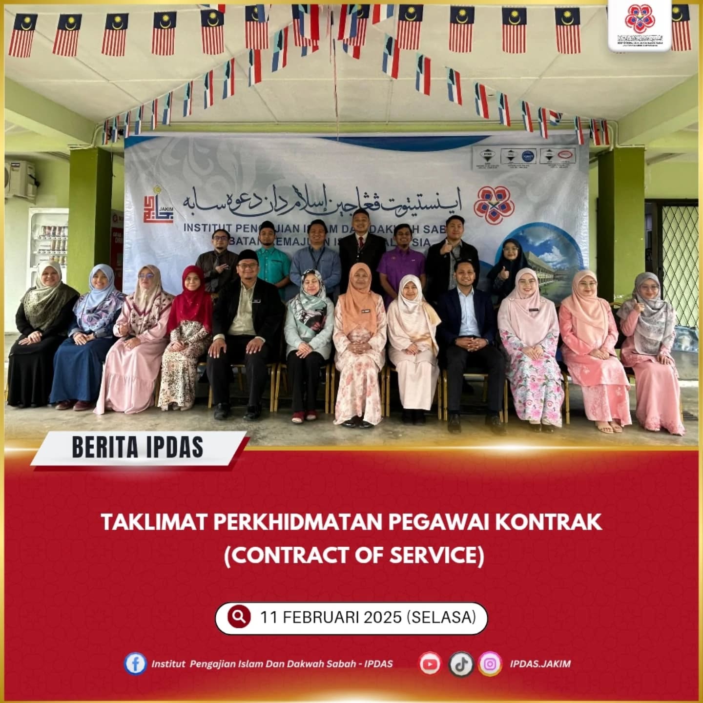 Keningau - Satu Taklimat Perkhidmatan Kontrak (Contract Of Service) telah diadakan di Bilik Mesyuarat Institut Pengajian Islam dan Dakwah Sabah (IPDAS), hari ini.