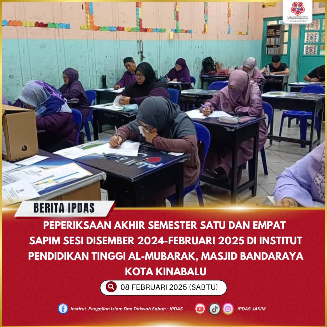 PEPERIKSAAN AKHIR SEMESTER SATU DAN EMPAT SIJIL ASAS PENGAJIAN ISLAM MALAYSIA (SAPIM) DI LOKASI TAMBAHAN INSTITUT PENDIDIKAN TINGGI AL-MUBARAK (IPTAM), MASJID BANDARAYA KOTA KINABALU, SABAH.