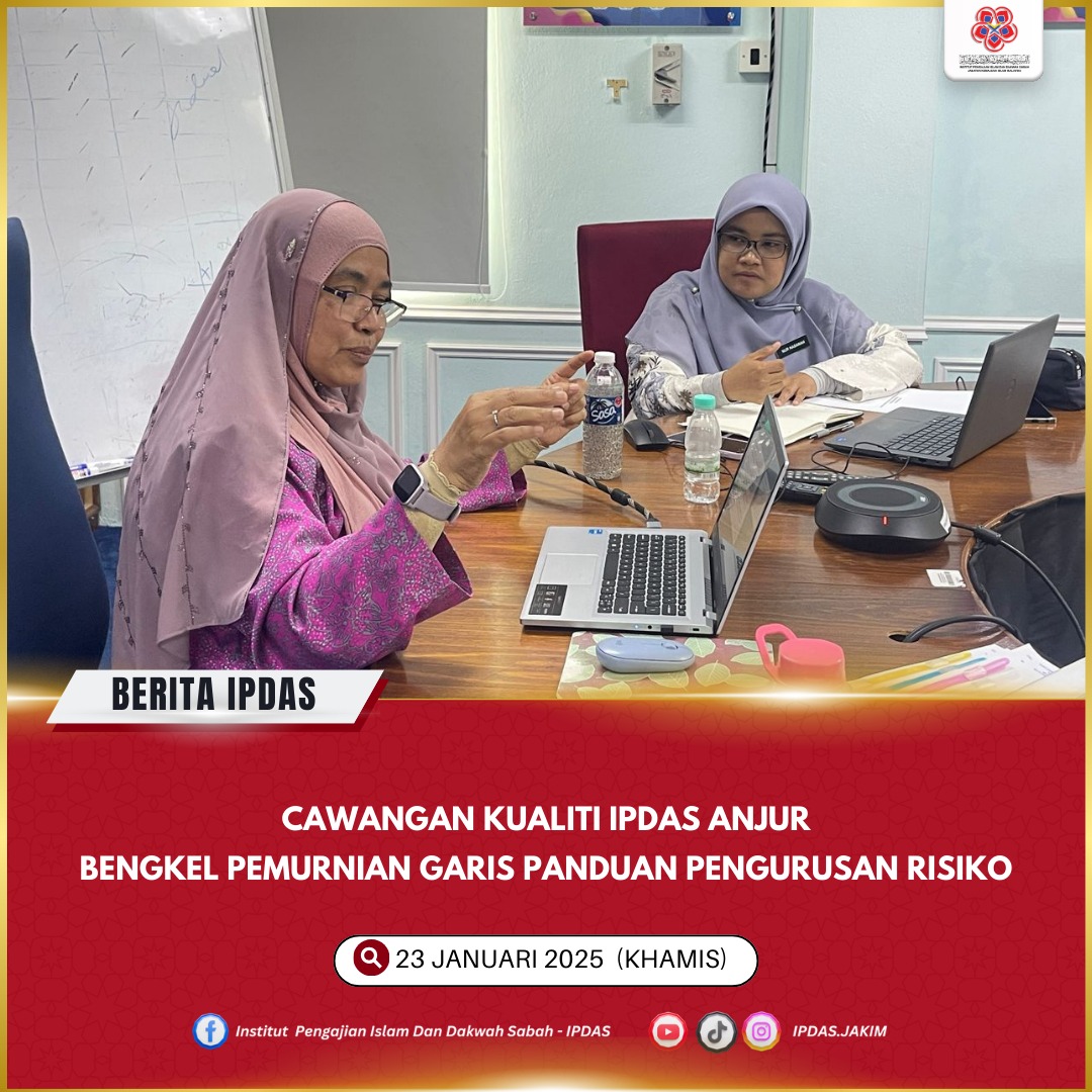 Keningau -Institut Pengajian Islam dan Dakwah Sabah (IPDAS) melalui Seksyen Dasar dan Standard Cawangan Kualiti telah mengadakan Bengkel Pemurnian Garis Panduan Pengurusan Risiko pada 21 hingga 23 Januari 2025 di Bilik Mesyuarat IPDAS.