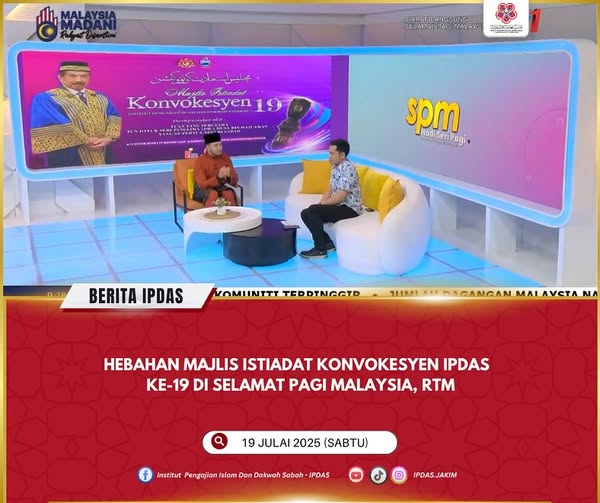 Kuala Lumpur - Satu hebahan dan promosi Majlis Istiadat Konvokesyen Institut Pengajian Islam dan Dakwah Sabah (IPDAS) ke-19 di siaran Selamat Pagi Malaysia, RTM telah berlangsung pada hari ini.